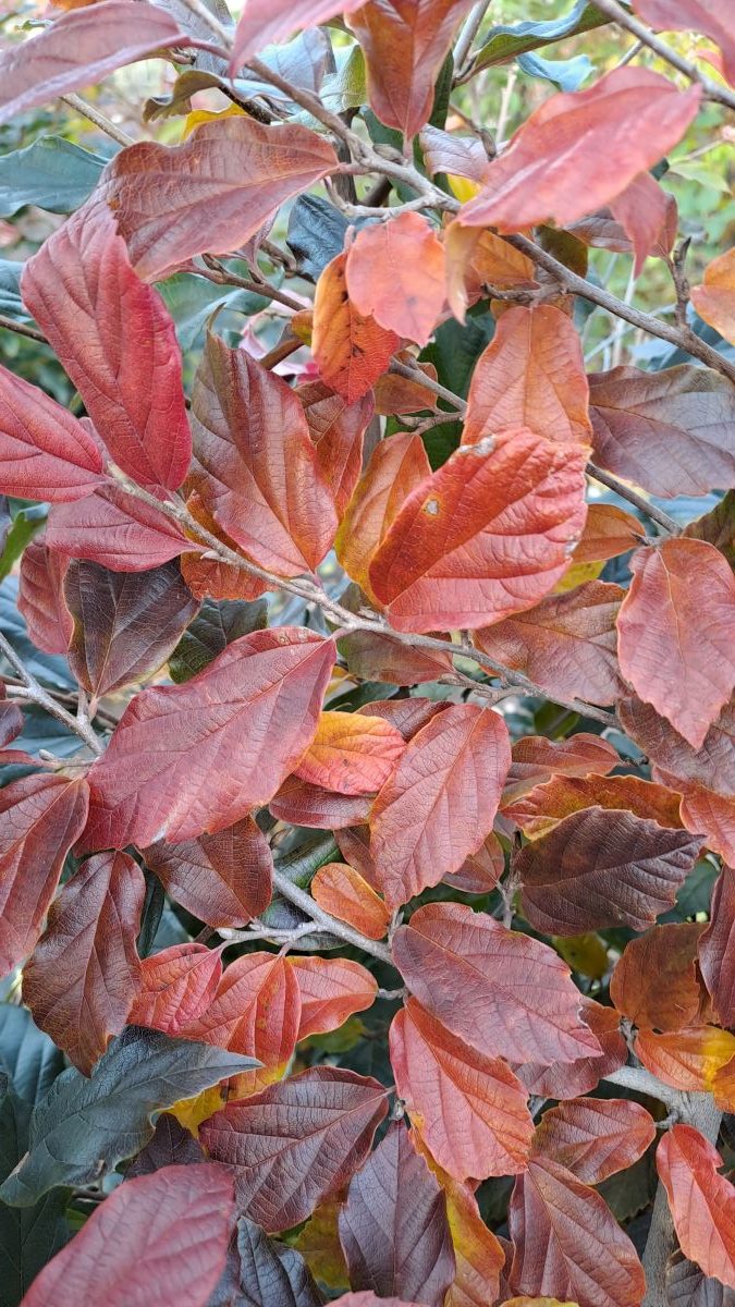 Winterblühender Zierstrauch Sycoparrotia mit Herbstfärbung.